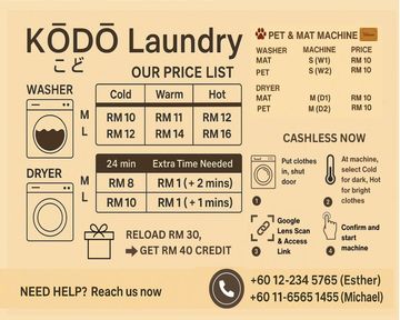 💛 Come and enjoy such an unique experience which is more than typical laundries, you’re getting a super-premium peace-of-mind experience: ✨ Spotless machines 🧴 Free premium detergent & softener ❄️ Air-conditioned comfort 🐾 Pet-friendly & hygiene-focused 📱 Easy QR payment, no coins 👩🏻 Friendly real humans via WhatsApp 🧼 It’s not just laundry — it’s a little joy in your day. 🌼